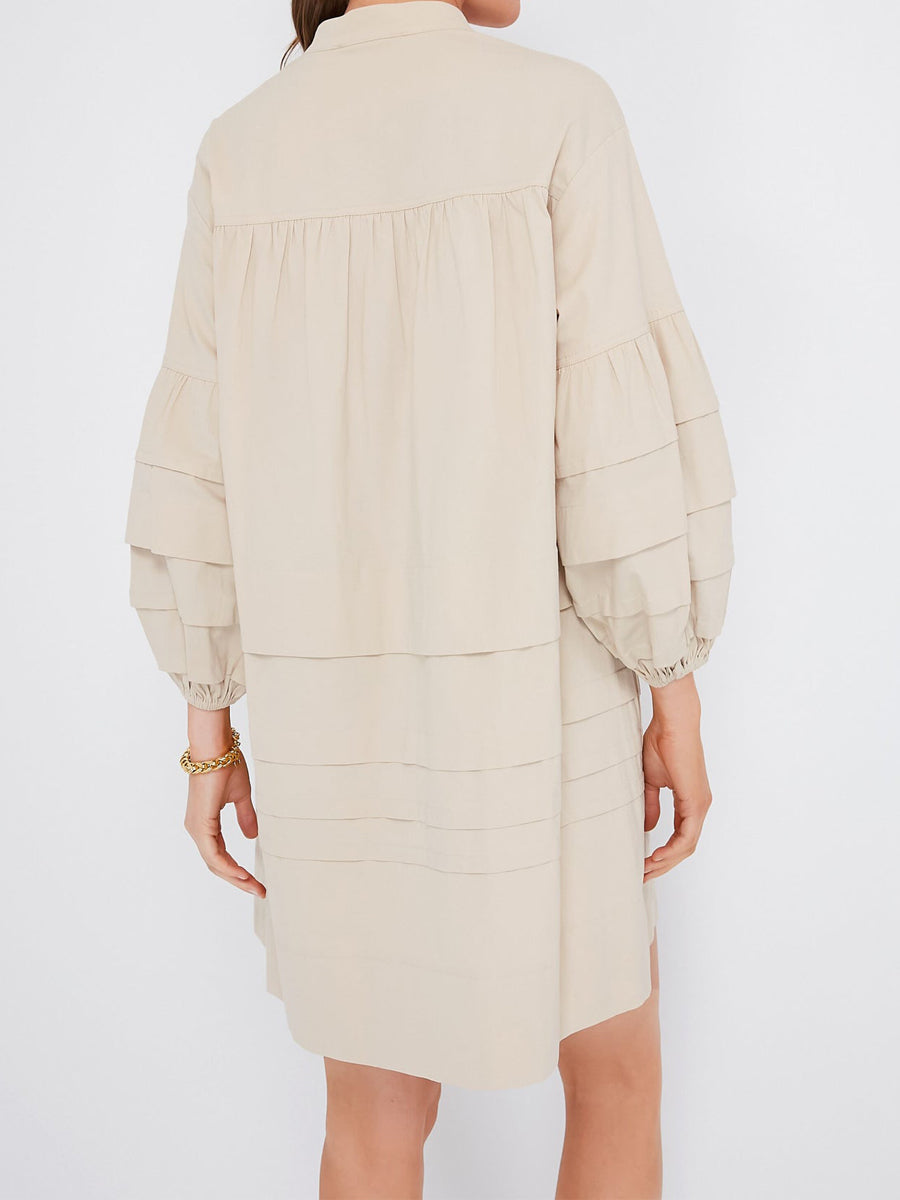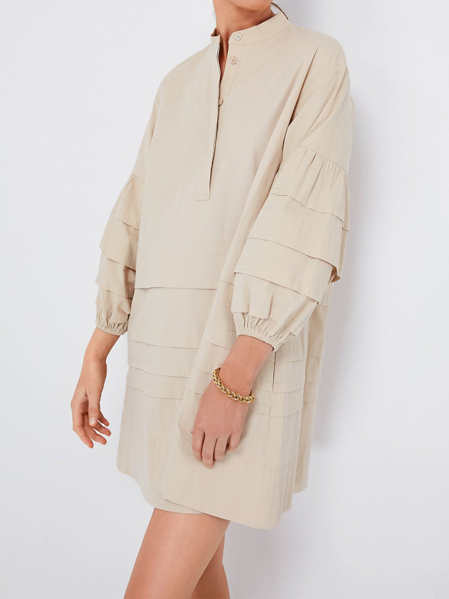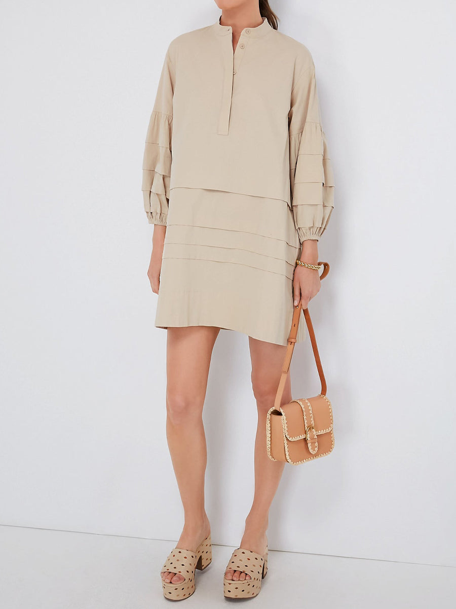 Band Collar Pleated Tiered Skirt Mini Dress