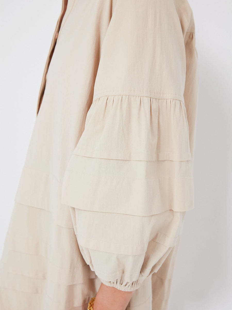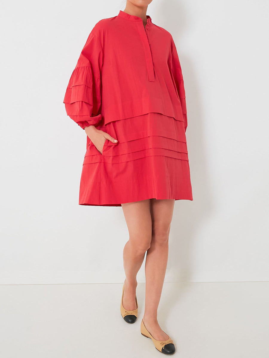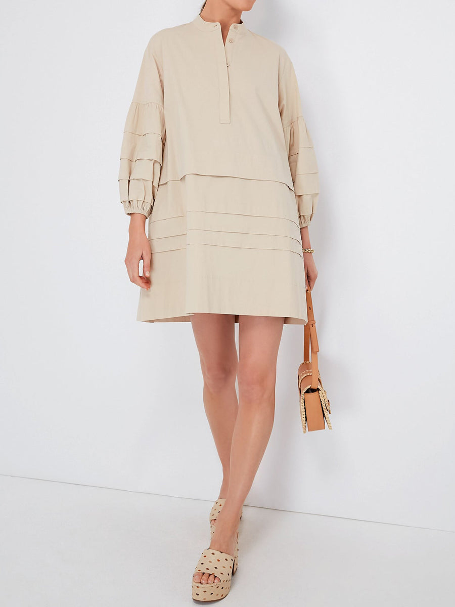 Band Collar Pleated Tiered Skirt Mini Dress