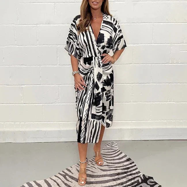 Comfortable V-Neck Printed Maxi Dress