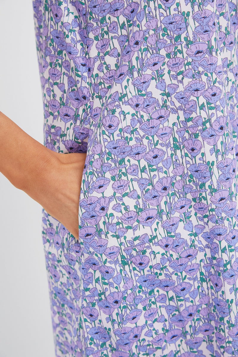 Purple Poppies Ruffle Collar Cotton Maxi Dress