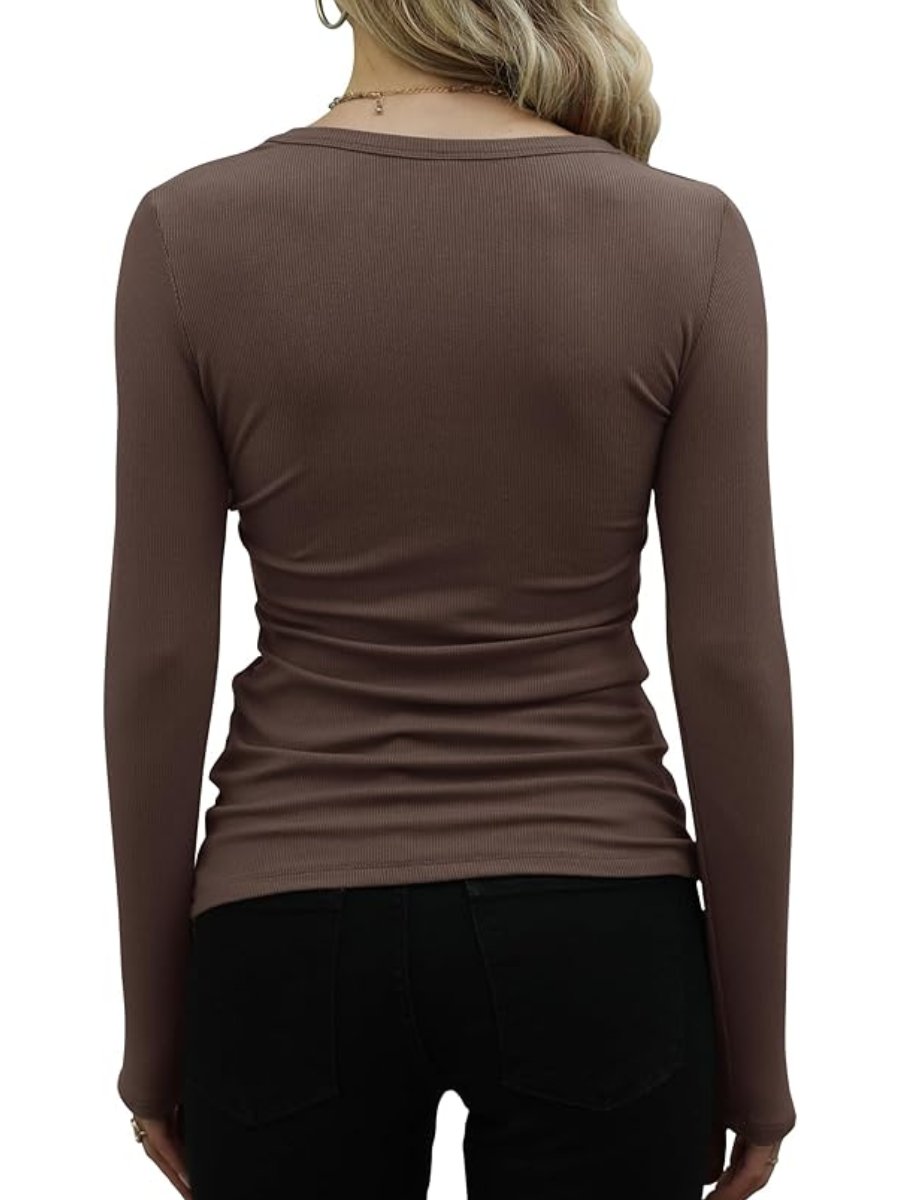 - Ribbed Knit Soft Plain Long Sleeve Crew Neck Shirt Top.Hand wash cold, machine wash, do not bleach.